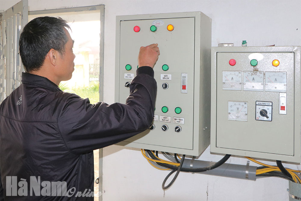 Công nhân vận hành Trạm xử lý nước thải hỗn hợp tập trung tại CCN Cầu Giát, thị xã Duy Tiên.