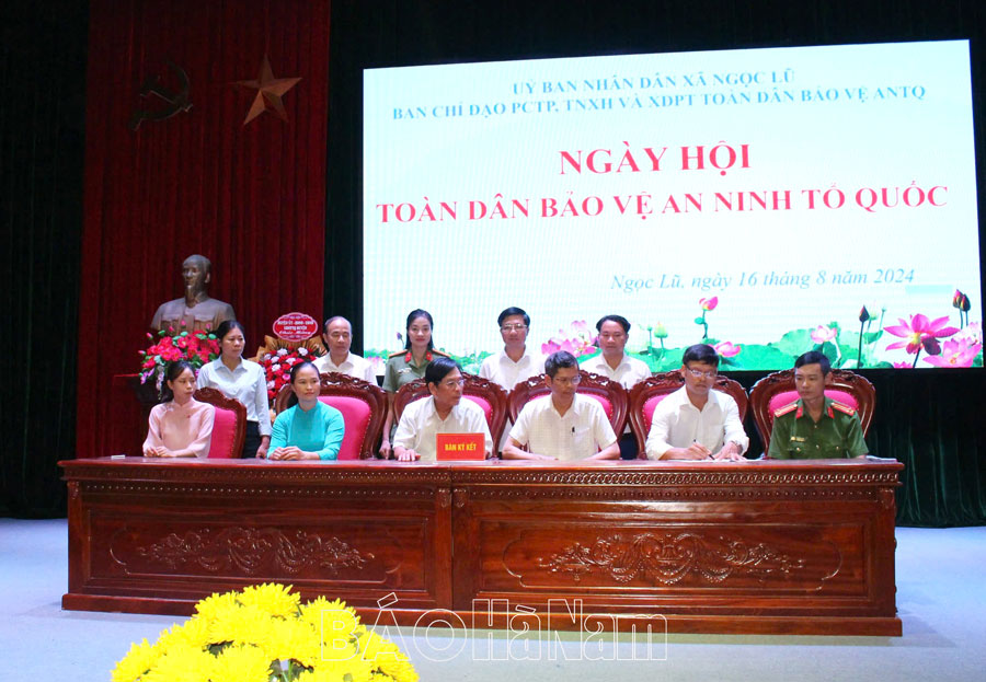 Cùng trong dịp này, đại diện Công an xã, các ban, ngành, đoàn thể chính trị - xã hội trên địa bàn xã Ngọc Lũ đã ký giao ước thi đua trong thực hiện nhiệm vụ bảo đảm ANTT. Nhiều tập thể, cá nhân được khen thưởng của Chủ tịch UBND tỉnh, Giám đốc Công an tỉnh, Chủ tịch UBND xã Ngọc Lũ vì có thành tích xuất sắc trong triển khai thực hiện phong trào Toàn dân bảo vệ ANTQ.