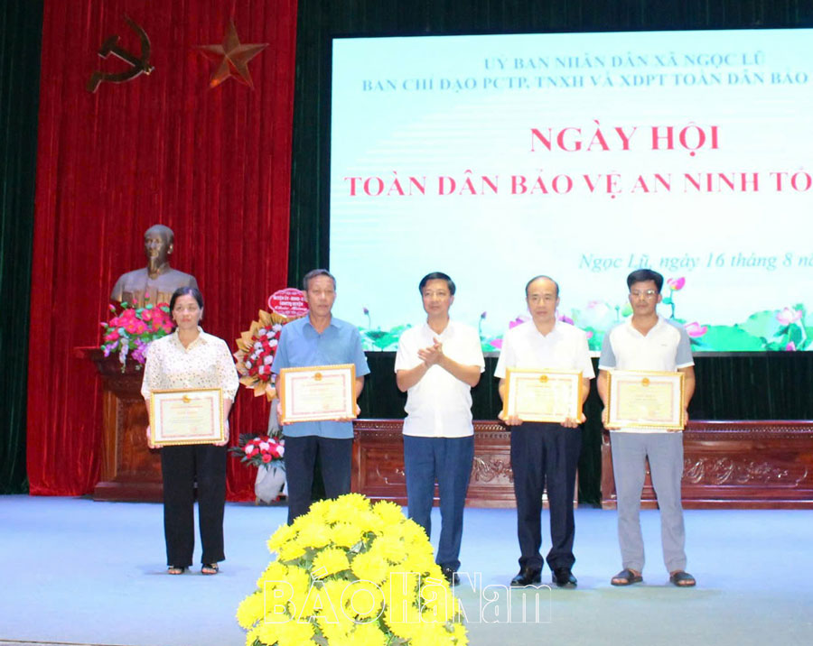Trao tặng Bằng khen của Chủ tịch UBND tỉnh cho tập thể lãnh đạo và nhân dân xã Ngọc Lũ vì những thành tích xuất sắc trong triển khai, thực hiện phong trào Toàn dân bảo vệ ANTQ.