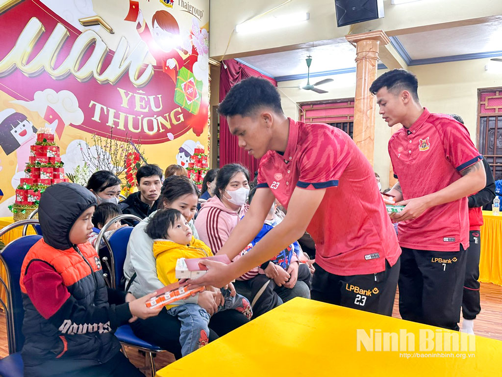 Các cầu thủ Ninh Bình FC trao những phần quà ý nghĩa, động viên đến các em nhỏ cùng gia đình nhân dịp Tết đến, Xuân về.
