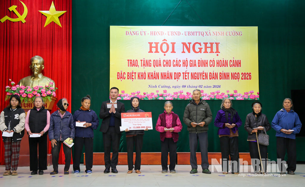 Đại diện Agribanktrao quà Tết Xuân Bính Ngọ 2026 cho các gia đình đặc biệt khó khăn trên địa bàn xã Ninh Cường.