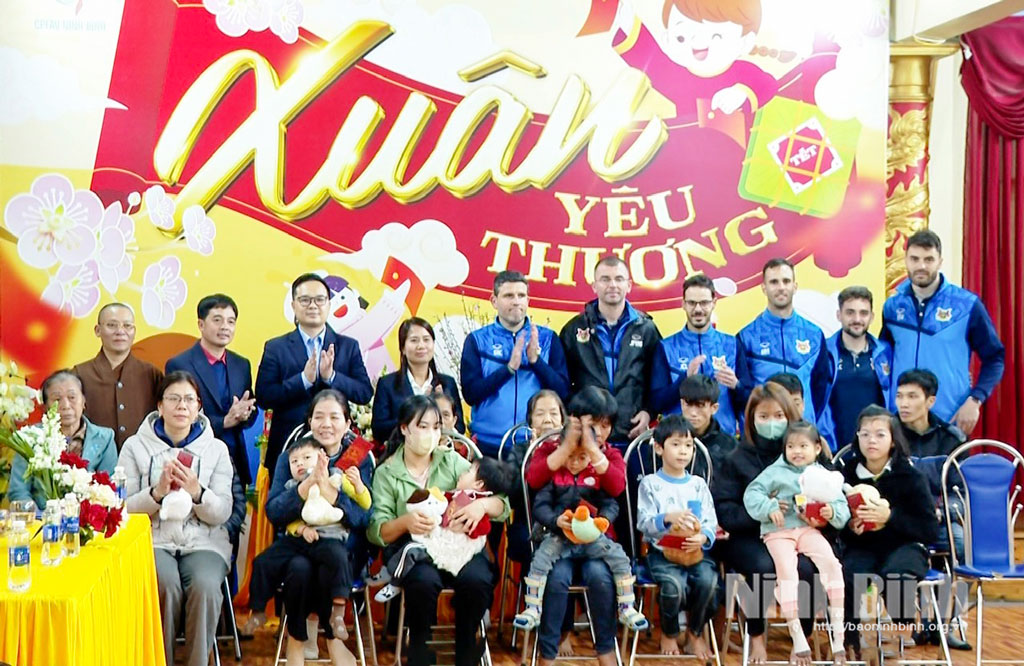 Tại buổi lễ, đại diện Ban lãnh đạo, Ban huấn luyện và các cầu thủ Ninh Bình FC đã trao 100 suất quà, mỗi suất quà trị giá 1.000.000 đồng cho các em nhỏ và gia đình. Đây là hoạt động nằm trong chuỗi các sự kiện thiện nguyện thường niên của đội bóng, nhằm chia sẻ khó khăn và mang đến một cái Tết đủ đầy hơn cho những mảnh đời kém may mắn.