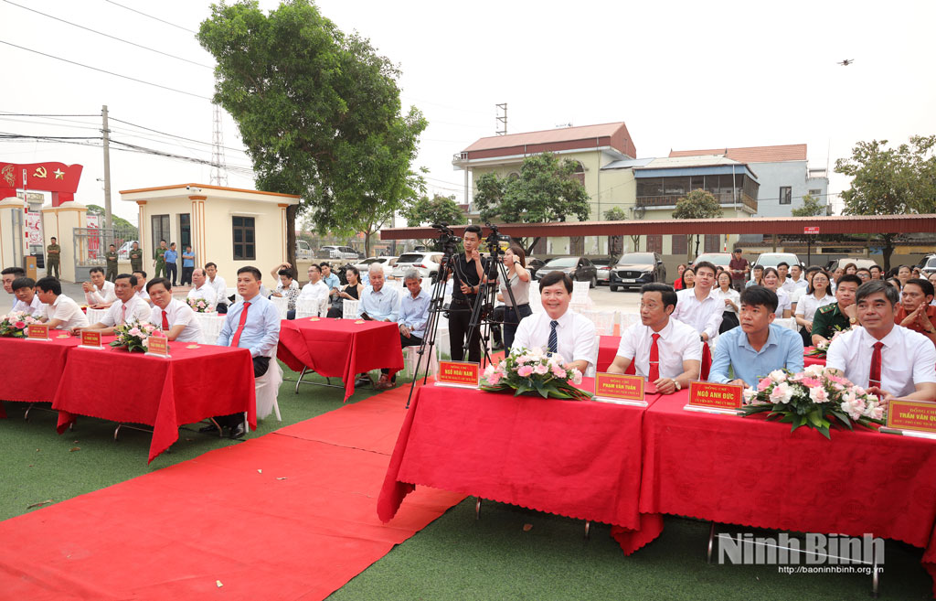 Lãnh đạo xã và các đại biểu chụp ảnh lưu niệm.