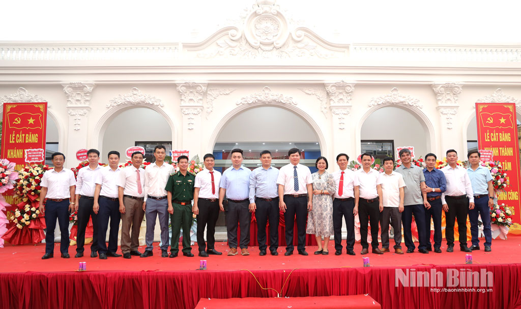 Lãnh đạo xã và các đại biểu cắt băng khánh thành Trung tâm Phục vụ hành chính công.