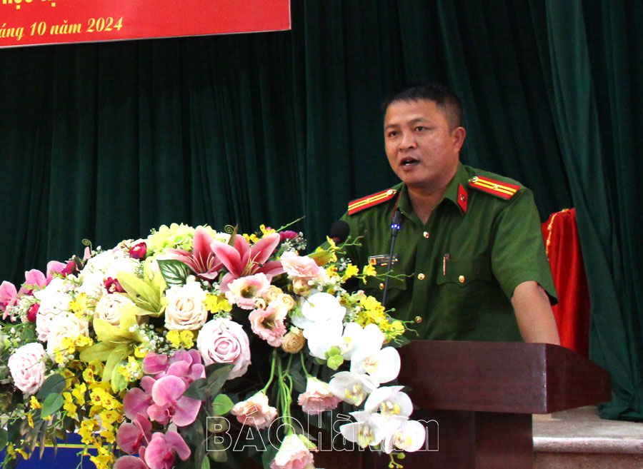 Đại diện Công an xã truyền đạt chuyên đề “Phòng chống lừa đảo trên không gian mạng”.