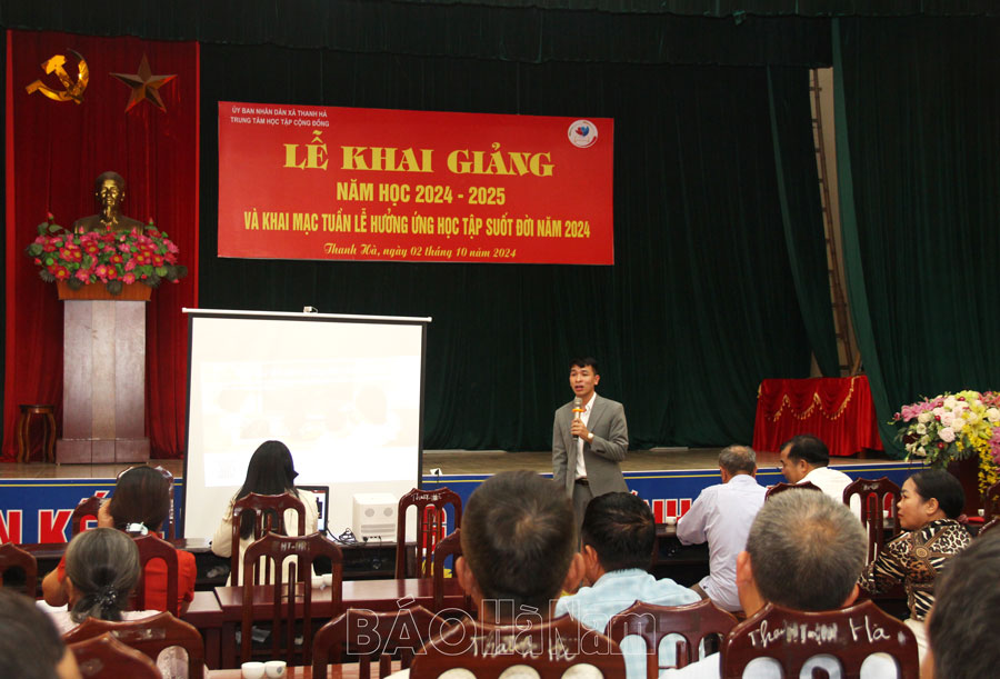 Tại lễ khai giảng, khai mạc, cán bộ, giảng viên, học viên của Trung tâm HTCĐ xã Thanh Hà thống nhất nội dung phát động tuần lễ hưởng ứng học tập suốt đời năm 2024 với chủ đề: “Phát triển văn hóa đọc, thúc đẩy học tập suốt đời” cùng một số nhiệm vụ cụ thể như: triển khai các chương trình học tập trực tuyến; đẩy mạnh ứng dụng công nghệ thông tin trong hoạt động dạy, học và hoạt động thư viện; tạo điều kiện để các cơ sở giáo dục xây dựng, thu thập, khai thác nguồn tài nguyên giáo dục mở hữu ích từ sách, báo, bài giảng điện tử… Bên cạnh đó, tổ chức các chuyên đề tư vấn, tập huấn kỹ năng tìm kiếm, khai thác, sử dụng thông tin trên mạng internet một cách hữu ích, an toàn; tổ chức giới thiệu về sách, các tài liệu điện tử hữu ích trên các trang thông tin mạng và trang quản lý thông tin về trung tâm HTCĐ; tổ chức các diễn đàn, cuộc thi về chủ đề công dân học tập, công dân toàn cầu, giúp học sinh, sinh viên, người dân tìm hiểu về kỹ năng và năng lực thiết yếu của công dân trong thời đại số hóa, toàn cầu hóa.