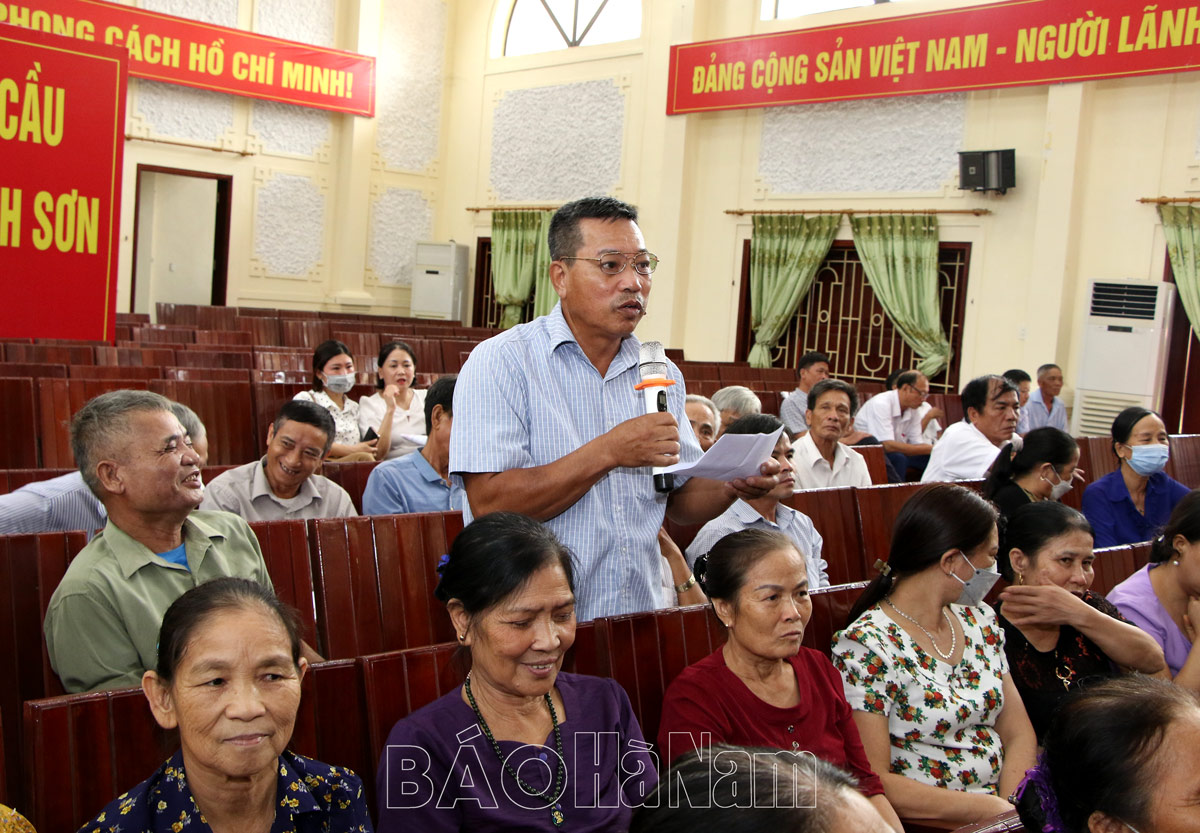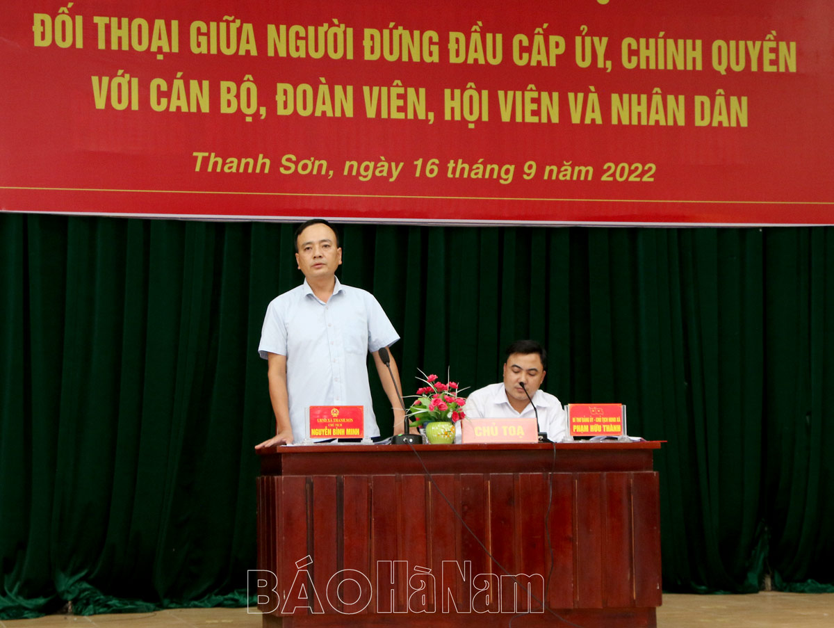 Phát biểu ý kiến, kiến nghị tại buổi đối thoại, nhiều cán bộ, đoàn viên, hội viên, nhân dân Thanh Sơn đã bày tỏ niềm tin, sự phấn khởi trước kết quả phát triển kinh tế xã hội xã đạt được 8 tháng qua. Đồng thời, các đại biểu đã đặt nhiều câu hỏi liên quan đến tình hình phát triển kinh tế xã hội của địa phương thời gian tới được triển khai như thế nào khi Thanh Sơn phấn đấu lên phường, thực hiện tốt các tiêu chí xã Nông thôn mới kiểu mẫu, như: Xã sẽ xử lý như thế nào tình trạng người dân bỏ cấy ở những vùng diện tích trũng, thường xuyên bị ngập nước; Dự án kè sông Đáy đang thi công, nhiều hộ dân bị ảnh hưởng bởi dự án đã nhận tiền hỗ trợ GPMB. Tuy nhiên, vẫn còn một số rãnh nước thải từ khu dân cư chảy ra sông và một số bậc bến lên xuống do người dân tự bỏ tiền xây trước đây dự án chưa đền bù; Việc đảm bảo chăm sóc các đường hoa, xây xanh trong chương trình xây dựng nông thôn mới kiểu mẫu được giao cho các hội, đoàn thể phụ trách, nhưng không có kinh phí duy trì hoạt động. Xã có giải pháp gì để duy trì mô hình hoạt động hiệu quả?