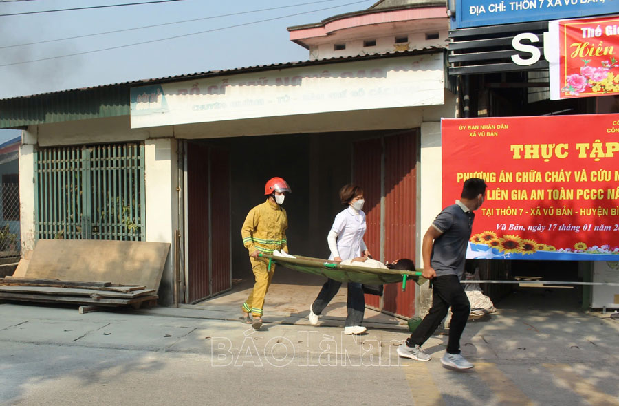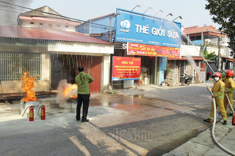 Sáng 17/1, Phòng Cảnh sát Phòng cháy, chữa cháy và Cứu nạn, cứu hộ (PCCC & CNCH), Công an tỉnh phối hợp với Công an huyện Bình Lục, UBND xã Vũ Bản tổ chức hội nghị ra mắt Đội PCCC và CNCH tình nguyện xã Vũ Bản và thực tập phương án chữa cháy và CNCH tại Tổ liên gia an toàn PCCC nâng cao thôn 7.