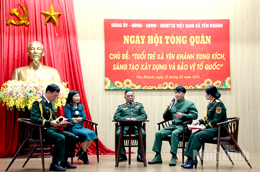 “Ngày Hội tòng quân” xã Yên Khánh năm 2026 có chủ đề “Tuổi trẻ xã Yên khánh xung kích, sáng tạo xây dựng và bảo vệ Tổ quốc”. Trong không khí rộn ràng của ngày hội tòng quân, buổi tọa đàm giữa đại diện Hội CCB xã, đại diện gia đình thanh niên nhập ngũ và thanh niên nhập ngũ với những câu chuyện cụ thể, những kinh nghiệm, niềm mong ước, sự quyết tâm... đã thực sự truyền cảm hứng, là hành trang quý để các bạn trẻ vững tin bước vào quân ngũ.