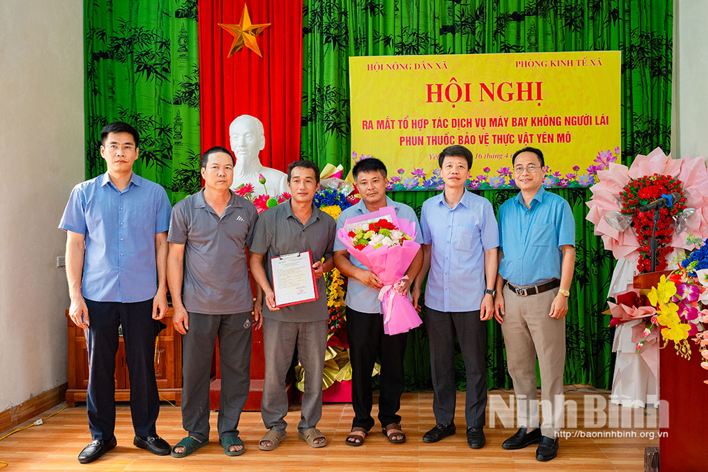 Chiều 16/4, Hội Nông dân xã Yên Mô tổ chức ra mắt Tổ hợp tác dịch vụ máy bay không người lái (Drone/UAV) phun thuốc bảo vệ thực vật, đánh dấu bước tiến mới trong ứng dụng công nghệ cao vào sản xuất nông nghiệp trên địa bàn. Dự buổi ra mắt có lãnh đạo xã Yên Mô cùng đông đảo cán bộ, hội viên nông dân và Nhân dân địa phương.
