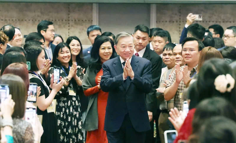 Trong khuôn khổ chuyến thăm chính thức Singapore, chiều tối 11/3, Tổng Bí thư Tô Lâm và Phu nhân cùng Đoàn đại biểu cấp cao Việt Nam đã có cuộc gặp gỡ, trò chuyện với cán bộ, nhân viên Đại sứ quán và hơn 200 bà con đại diện cộng đồng người Việt Nam tại Singapore.