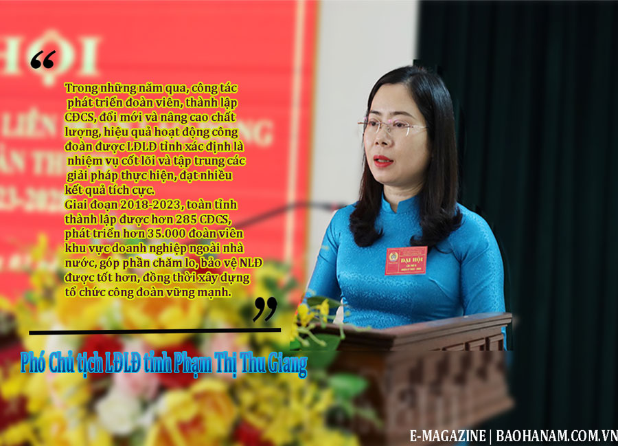Những năm gần đây, số lượng doanh nghiệp đầu tư vào Hà Nam tăng nhanh, kéo theo đó là sự gia tăng về lực lượng lao động. Phát huy vai trò là tổ chức đại diện bảo vệ quyền lợi NLĐ, LĐLĐ tỉnh quan tâm chỉ đạo các cấp công đoàn tập trung phát triển đoàn viên, thành lập CĐCS.