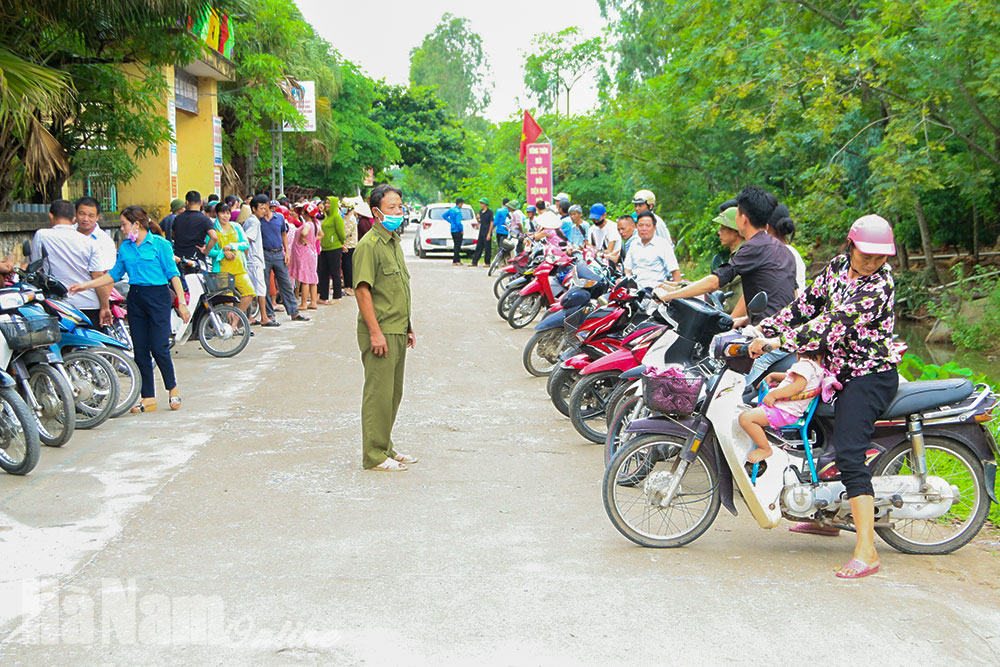 10 giờ 30 phút sáng, khi chúng tôi có mặt tại Trường Tiểu học xã Nhân Thịnh (Lý Nhân) đúng vào thời điểm các bậc phụ huynh bắt đầu đến trường để đón con. Từng chiếc xe máy, xe đạp đi đến đúng vị trí đã được sơn, kẻ vạch, gắn biển theo từng thôn để xếp gọn xe về phía lề đường. Chỉ vài phút sau, cả dãy xe máy, xe đạp được xếp thành từng hàng ngay ngắn sát bên cổng trường để đón con.
