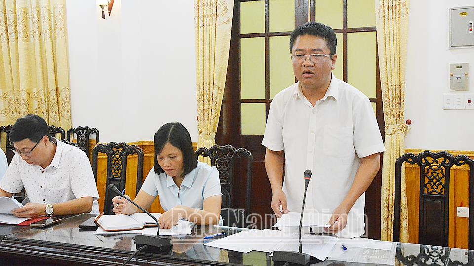 | Lãnh đạo huyện Giao Thủy báo cáo kết quả thực hiện xây dựng huyện NTM kiểu mẫu. |