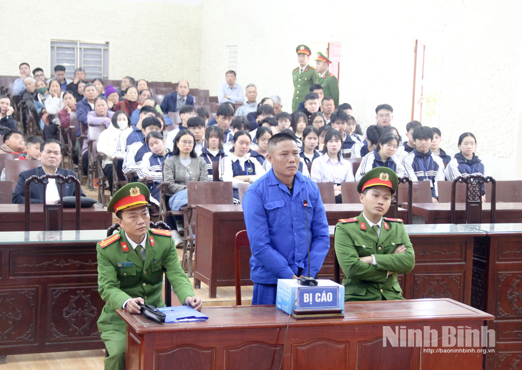 Sáng 11/2, tại hội trường Đảng ủy xã Hải Xuân, Tòa án nhân dân tỉnh Ninh Bình phối hợp với Viện Kiểm sát nhân dân tỉnh Ninh Bình, Đảng ủy, UBND xã Hải Xuân tổ chức phiên tòa xét xử lưu động vụ án hình sự đối với bị cáo Trần Văn Minh (xóm 17, xã Hải Xuân) về tội “Buôn bán hàng cấm”.