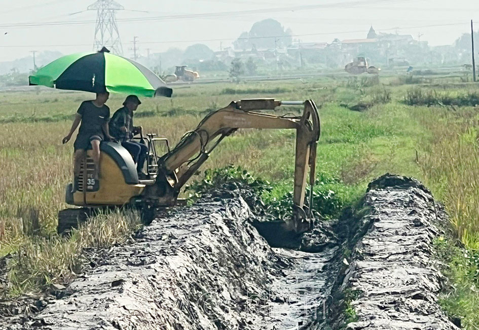 Đào đắp kênh mương nội đồng tại HTXDVNN Nguyễn Úy (Kim Bảng). Ảnh: Thành Nam