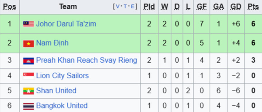 BXH bảng B cúp C1 Đông Nam Á 2025-2026.
