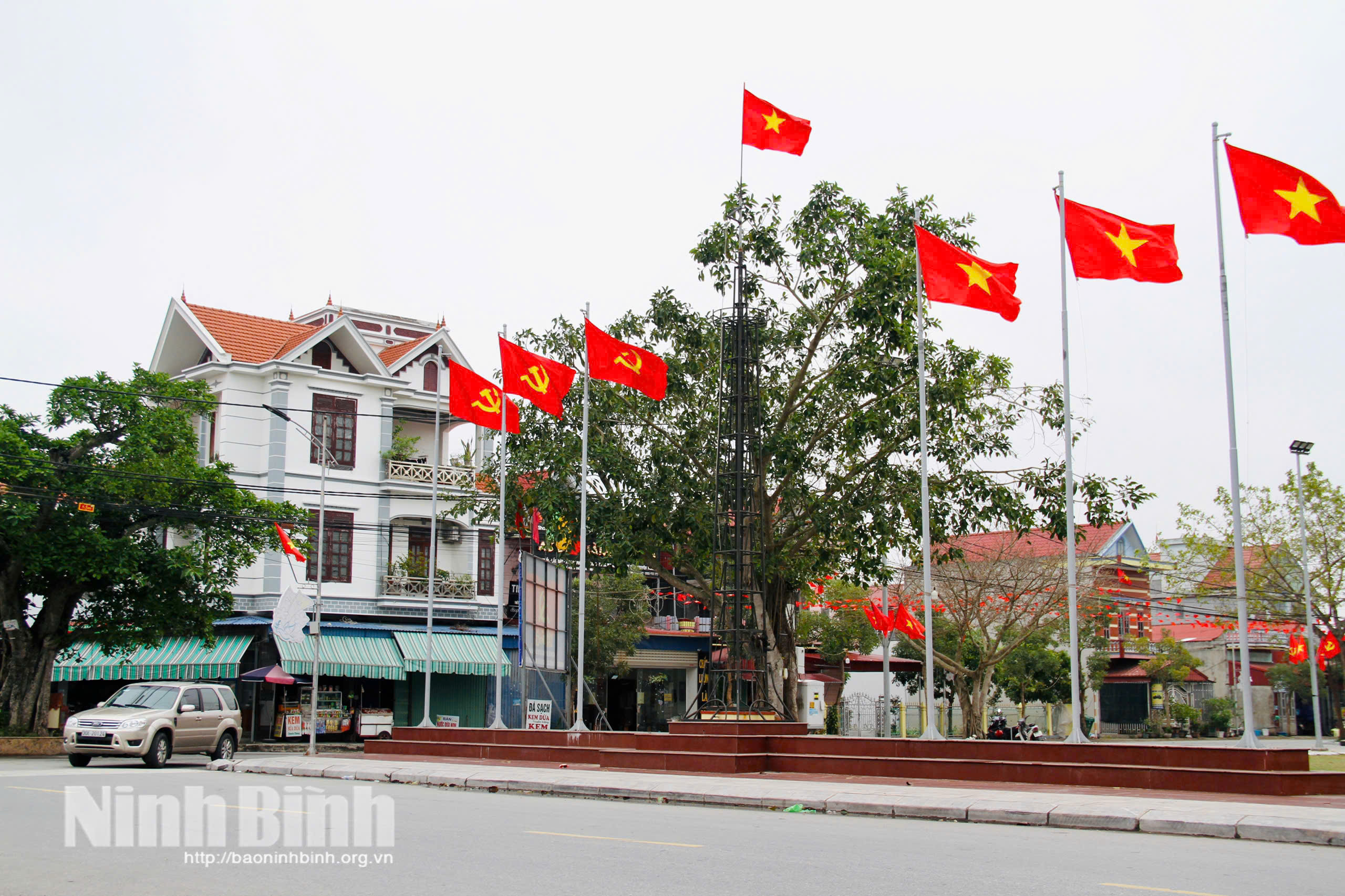 Đường làng xã Cúc phương rực rỡ cờ hoa mừng Đảng, mừng Xuân.