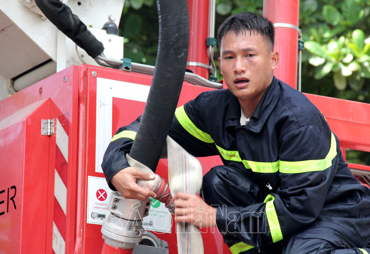 Dưới đây là những hình ảnh cán bộ, chiến sỹ Phòng Cảnh sát PCCC&CNCH (Công an tỉnh) và các lực lượng chức năng cùng người dân tham gia dập lửa, cứu người tại vụ cháy sáng 27/6 ở Phủ Lý: