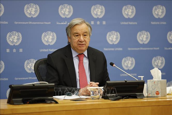 Tổng Thư ký LHQ Antonio Guterres phát biểu tại cuộc họp báo ở New York, Mỹ ngày 19/4/2021.