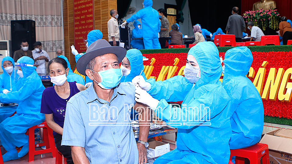 | Trung tâm Y tế huyện Ý Yên đẩy nhanh tiến độ tiêm vắc-xin cho người dân. |