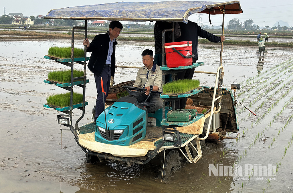 Ngay sau lễ ra mắt, các đại biểu và bà con nông dân đã trực tiếp tham quan trình diễn máy cấy lúa hiện đại trên đồng ruộng, tạo khí thế phấn khởi bước vào vụ sản xuất mới.