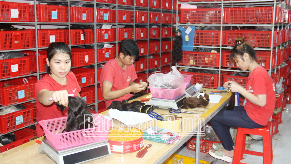 | Sản xuất tóc giả tại Nhà máy APO Group, thôn Dương Hồi, xã Yên Thắng (Ý Yên). |