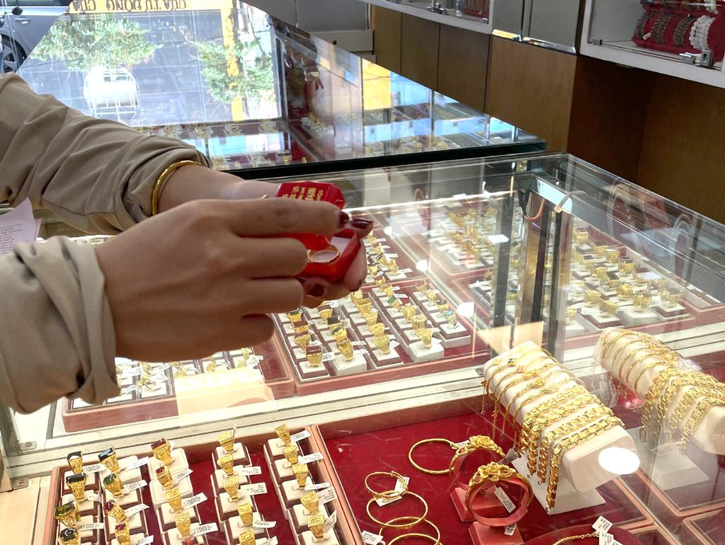 Khách hàng đến mua vàng tại Cửa hàng vàng bạc Hương Sơn (thành phố Hoa Lư).