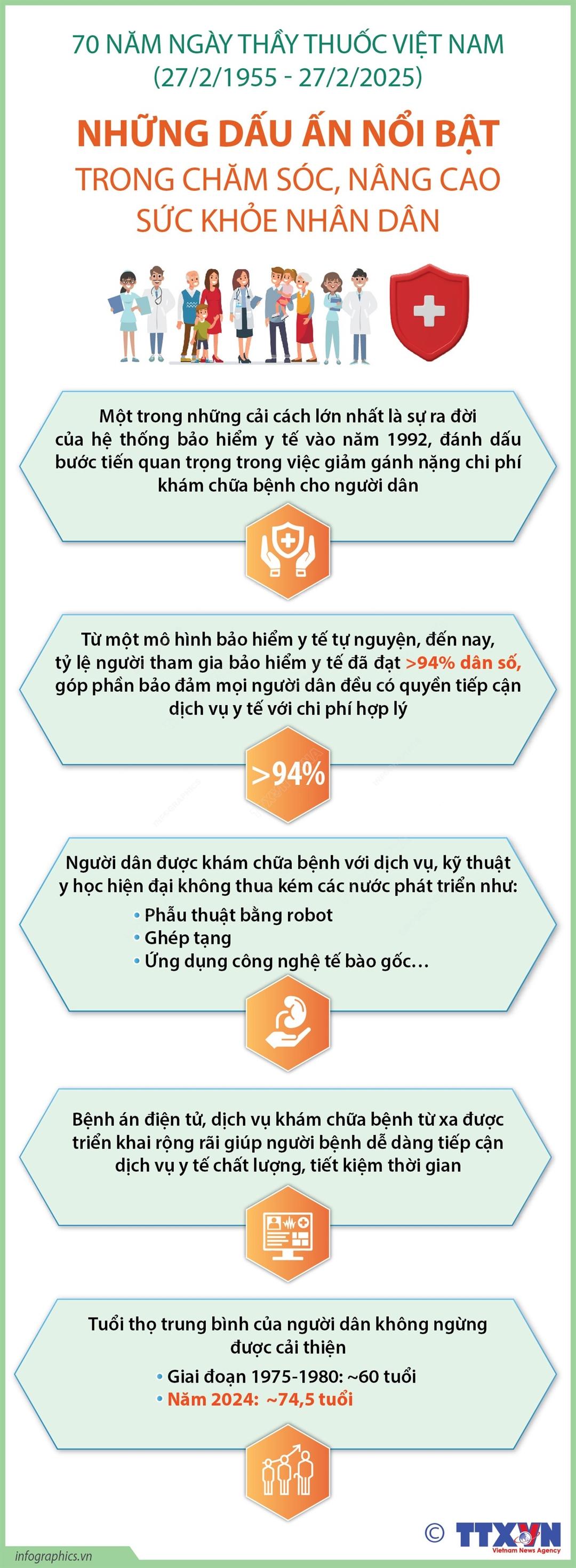 Ngày 27/2 hàng năm không chỉ là dịp để tri ân những cống hiến của đội ngũ y, bác sĩ mà còn là ngày tôn vinh "thiên thần áo trắng" - những người đã cống hiến hết mình cho sự nghiệp chăm sóc, bảo vệ và nâng cao sức khỏe nhân dân. Kỷ niệm 70 năm Ngày Thầy thuốc Việt Nam, chúng ta cùng nhìn lại lịch sử và ý nghĩa của ngày Thầy thuốc Việt Nam, ghi nhận những hy sinh và lòng dũng cảm của những người làm công tác y tế, để xây dựng một xã hội khỏe mạnh và phát triển.
